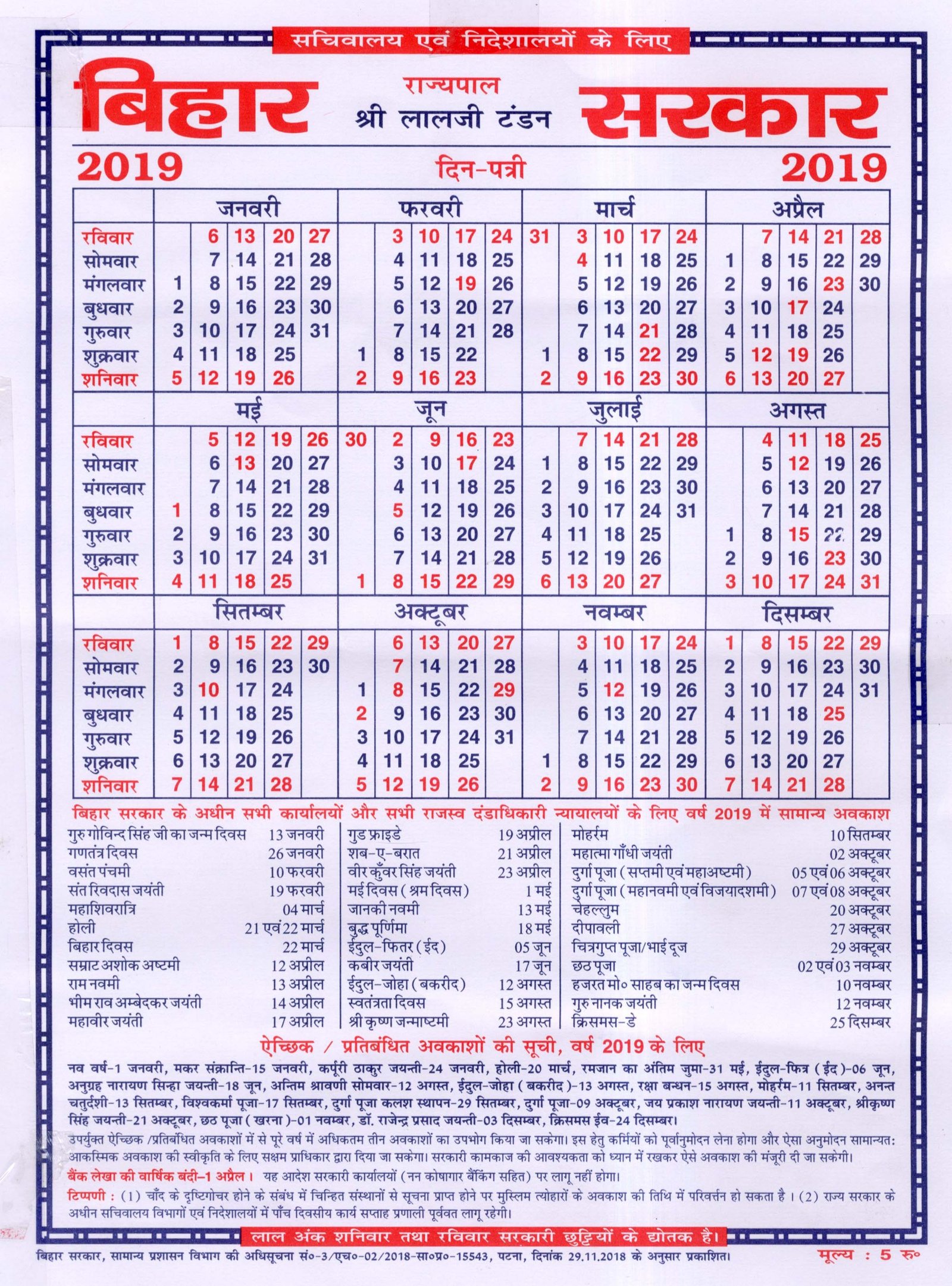 Calender 2019